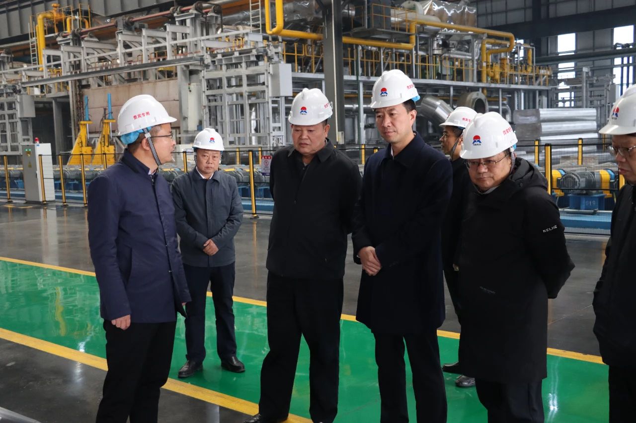 蒿铁群副主任一行听取相关汇报后,充分肯定了义瑞新材项目在全市经济发展中的积极作用,并对公司在智能化发展和坚持绿色低碳转型等方面所取得的成绩给予高度评价。随后,调研组一行走进生产车间,实地查看了1+4热连轧生产线和冷轧生产车间的生产运行情况,并对生产工艺、设备能力进行详细了解。