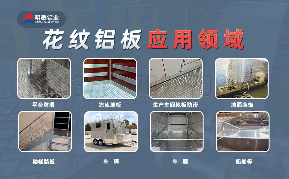 三条筋花纹板:由防锈铝合金坯料轧制而成,花纹平整,裁剪尺寸精确,便于安装,广泛用于墙面装饰及楼梯踏板处。